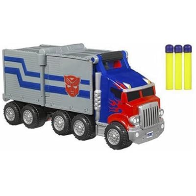 - Roll into battle, and blast evil with this awesome OPTIMUS PRIME truck that easily converts to a launching dart blaster – with just one pull!