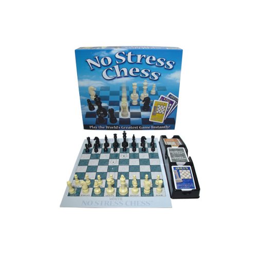 With this revolutionary chess teacher, you'll be playing the world's greatest game in no time at all! Unlike any other chess teacher, No Stress Chess teaches you how to play using illustrated cards and an illustrated two-sided game board. Includes two-sided chess board, 17 charcoal pieces, 17 ivory pieces, 56 action cards, black plastic card tray and instructions. For two players.